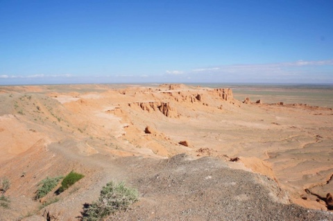 ウムヌゴビ県にあるバヤンザグは 1920 年代、 米国自然史博物館館長で古生物学者のロイ・チャップマン・アンドリュ 一氏の中央アジア調査隊が恐竜の卵の化石やサイに似た大型恐竜、オウムのような クチバシをした恐竜の骨などを発掘し、ゴビ沙漠を世界に初めて紹介した。 アルツ・ ボグド山の渓谷に 8km ほど続くバヤンザグ崖は何百年もの風化で現在の形になっ た。