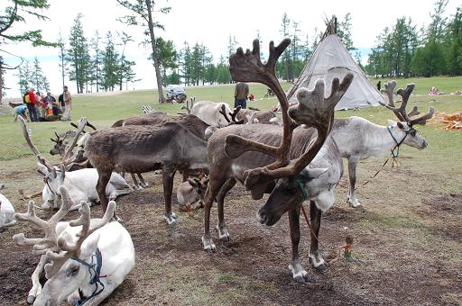 独自の文化・言語習慣をもつ一族はモンゴル最北端の テンギス、シャルガ、シシゲドなどの河の流域、 ジャムス、 オラーンタイガなどの山中で暮らしている。 夏は 27 度、 冬 はマイナス 55~60 度に達する極寒のタイガの奥深くで 白いトナカイを放牧している。 春営地から秋営地まで 50 ~70 キロを移動し、文明や発展から隔絶した土地で質 素に暮らしてきた。